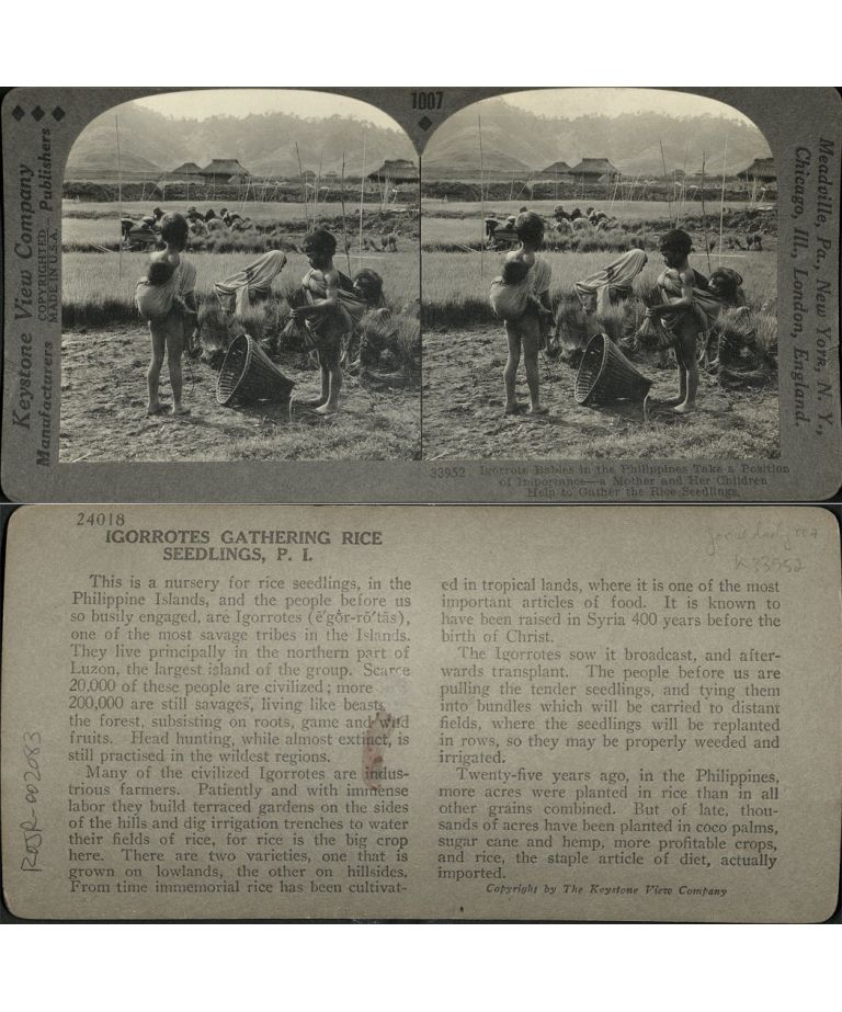 Igorrote [Igorot] Babies in the Philippines Take a Position of Importance - a Mother and her Children Help to Gather the Rice Seedlings.