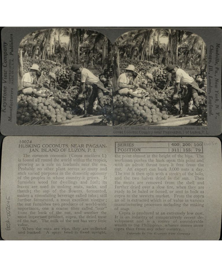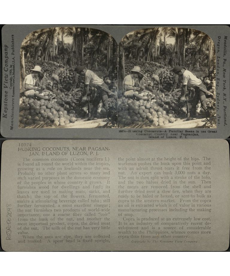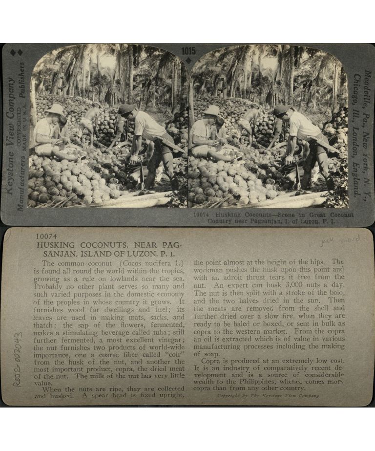 Husking Coconuts - Familiar Scene in the Great Coconut Country near Pagsanjan, I. of Luzon, P. I.