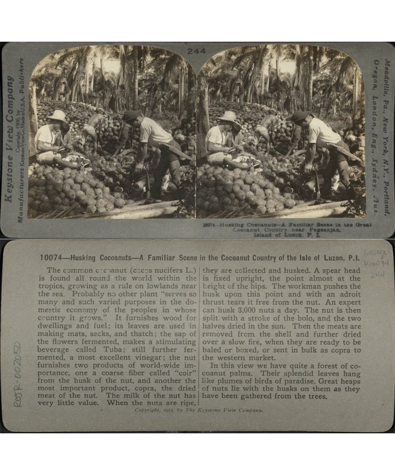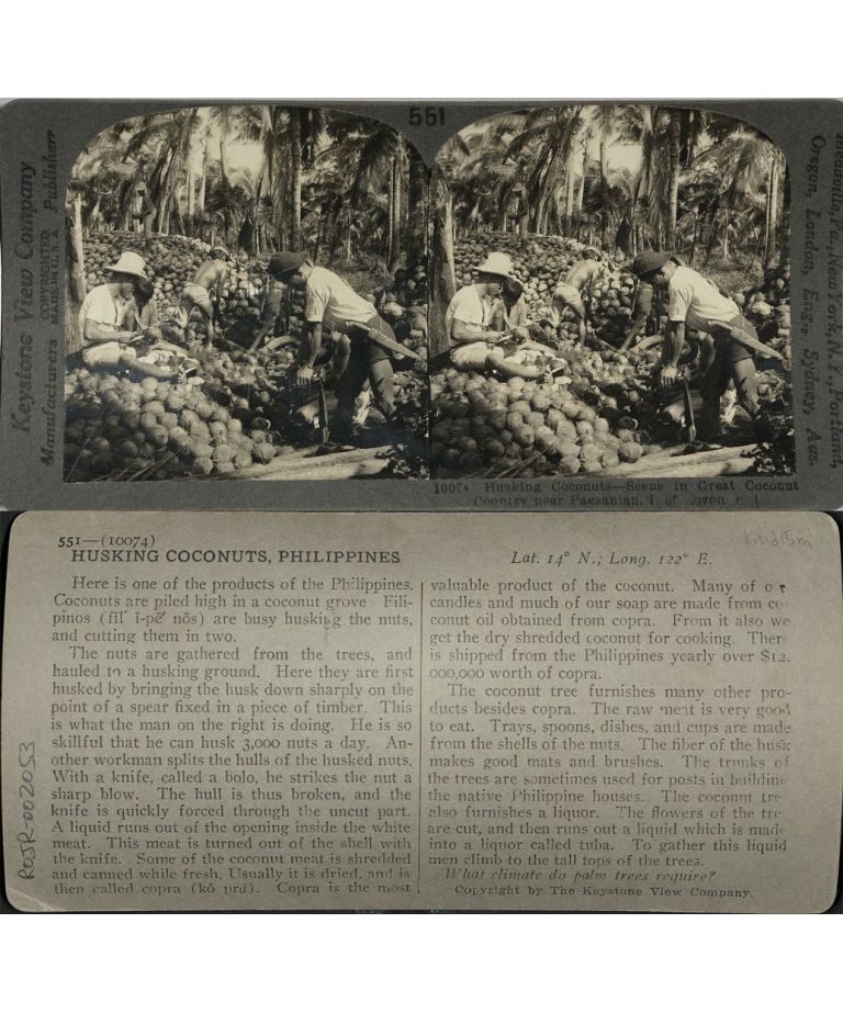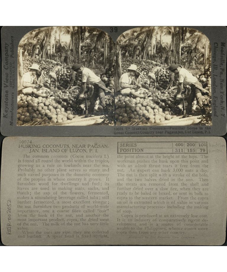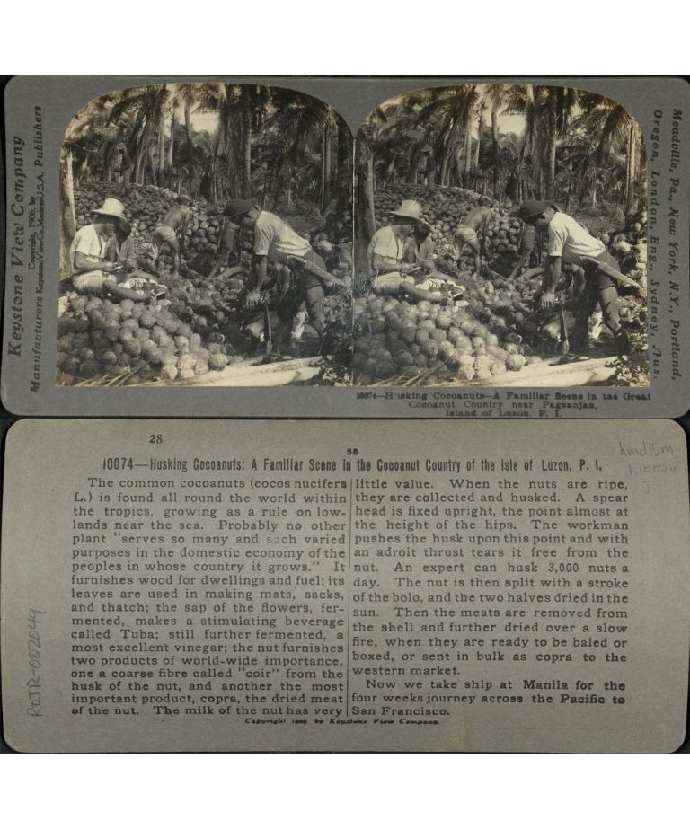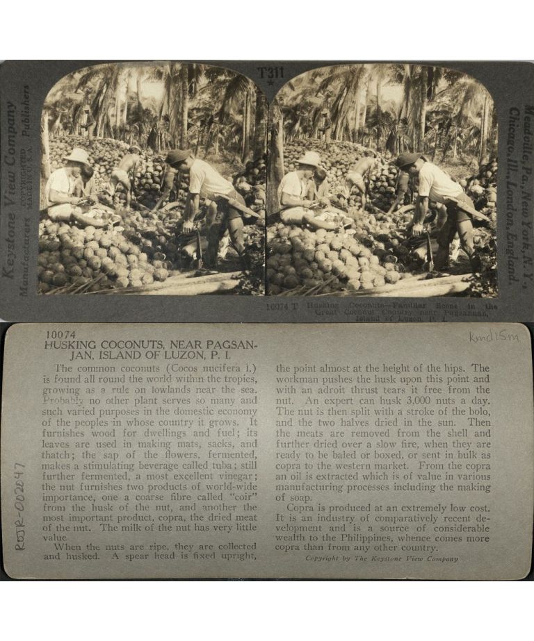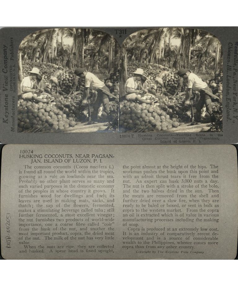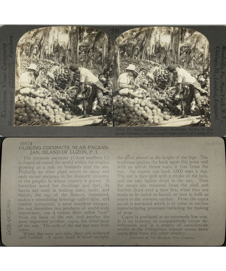 Husking Coconuts - Scene in Great Coconut Country near Pagsanjan, I. of Luzon, P. I.