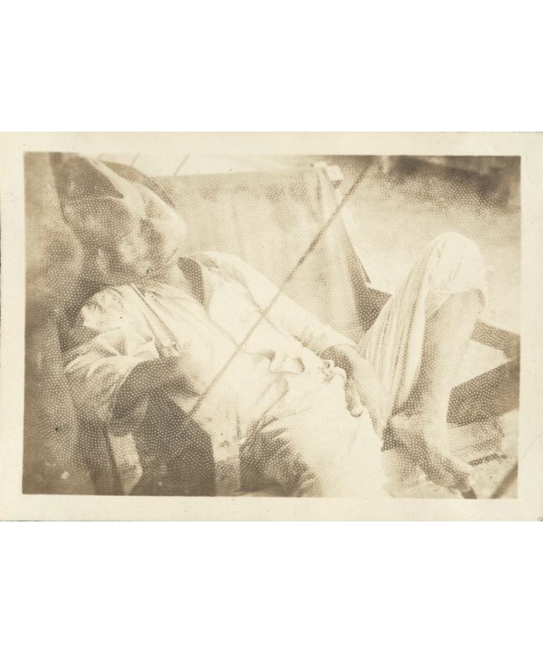 Ho-hum [Man sprawled and napping in a canvas sling chair].