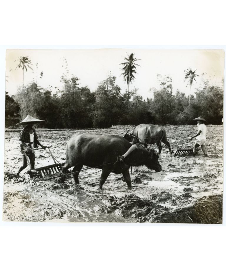 Harrowing the rice fields.