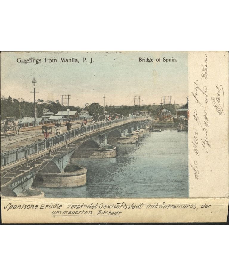 Greetings from Manila, P. J. [P. I.]. Bridge of Spain.