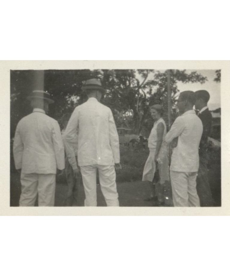 Gov. Betts, Bob [Hawkins], Dad [Harry Hawkins, Sr.], Mom [Hawkins], Carlos Cerquella & Jim [Stapler] at the Daraga station.
