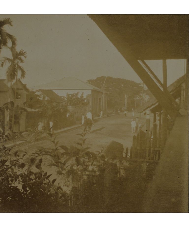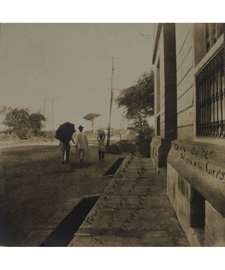 Funeral of infant, Calle Nozaleda, Manila. [Building on right:] Qrs. Co. [Quarters, Comapny] "E," Signal Corps.