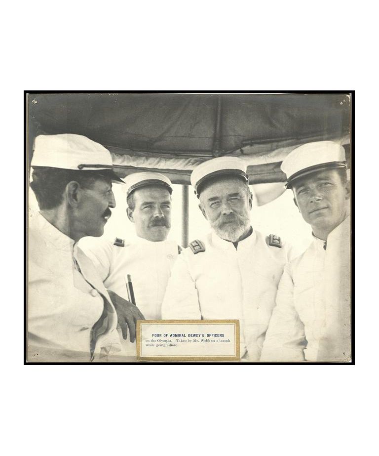 Four of Admiral Dewey's officers on the Olympia. Taken by Mr. Webb on a launch while going ashore.