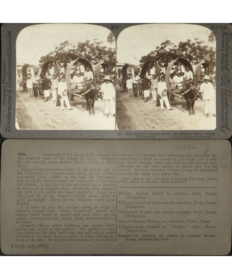 Filipino wagons drawn by carabao, Iloilo, Panay, Philippines.