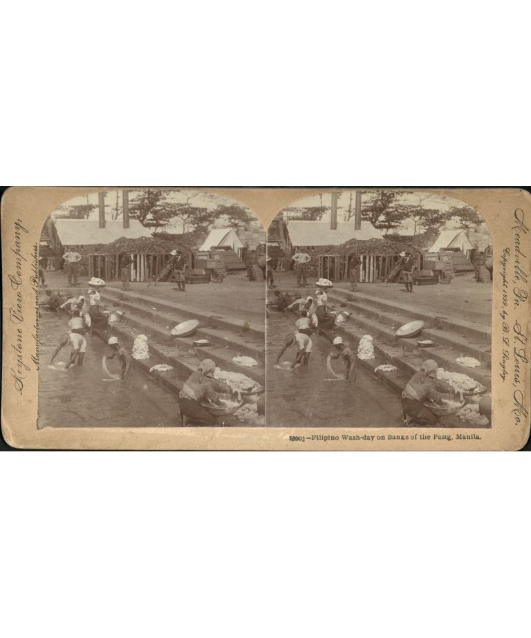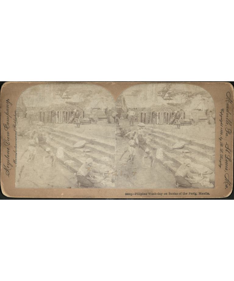 Filipino Wash-day on Banks of the Pasig, Manila,.