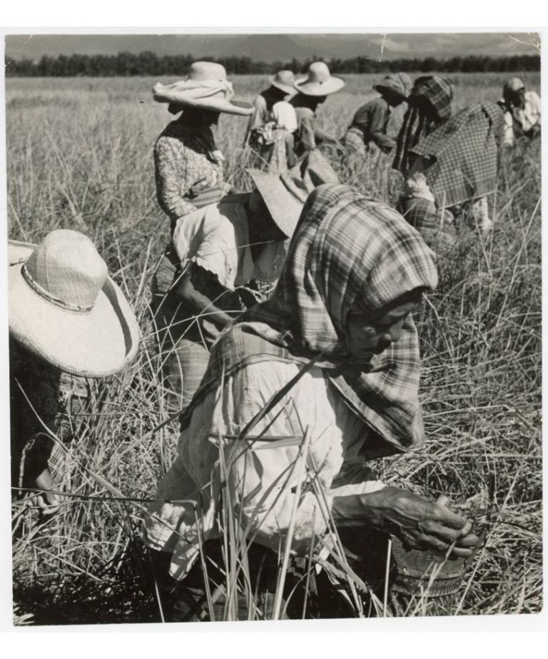 Field workers harvesting the rice crop on the Island of Negros, Philippines.