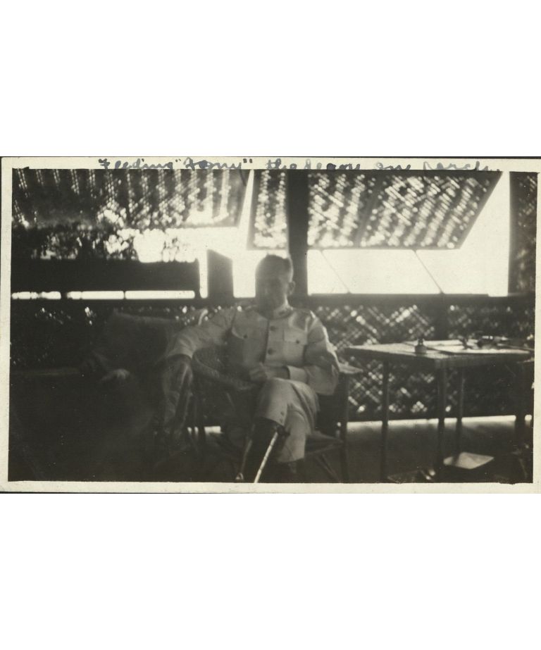 Feeding "Ferry" the deer on porch [?].