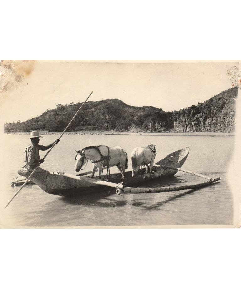 Ferrying horses across the Tagudin River [sic: Amburayan River] in a banca. Amburayan, Sub. Prov. [sic: Tagudin, Ilocos Sur].
