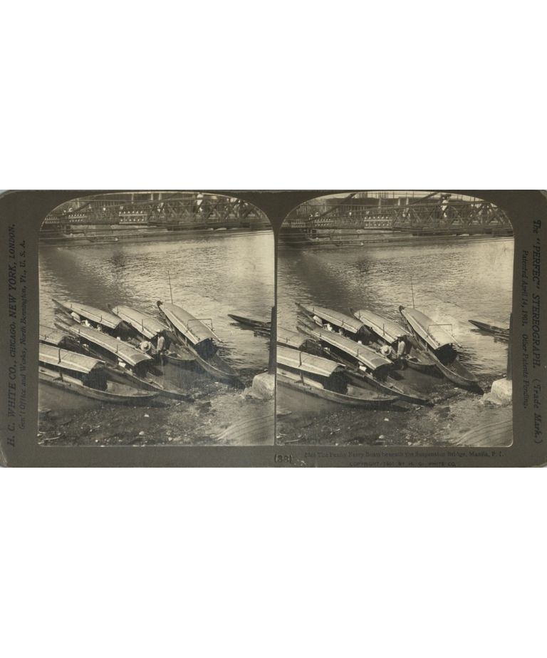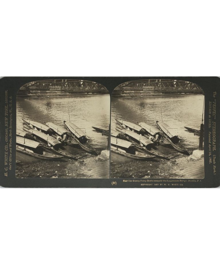 The Penny Ferry Boats beneath the Suspension Bridge, Manila, P. I.