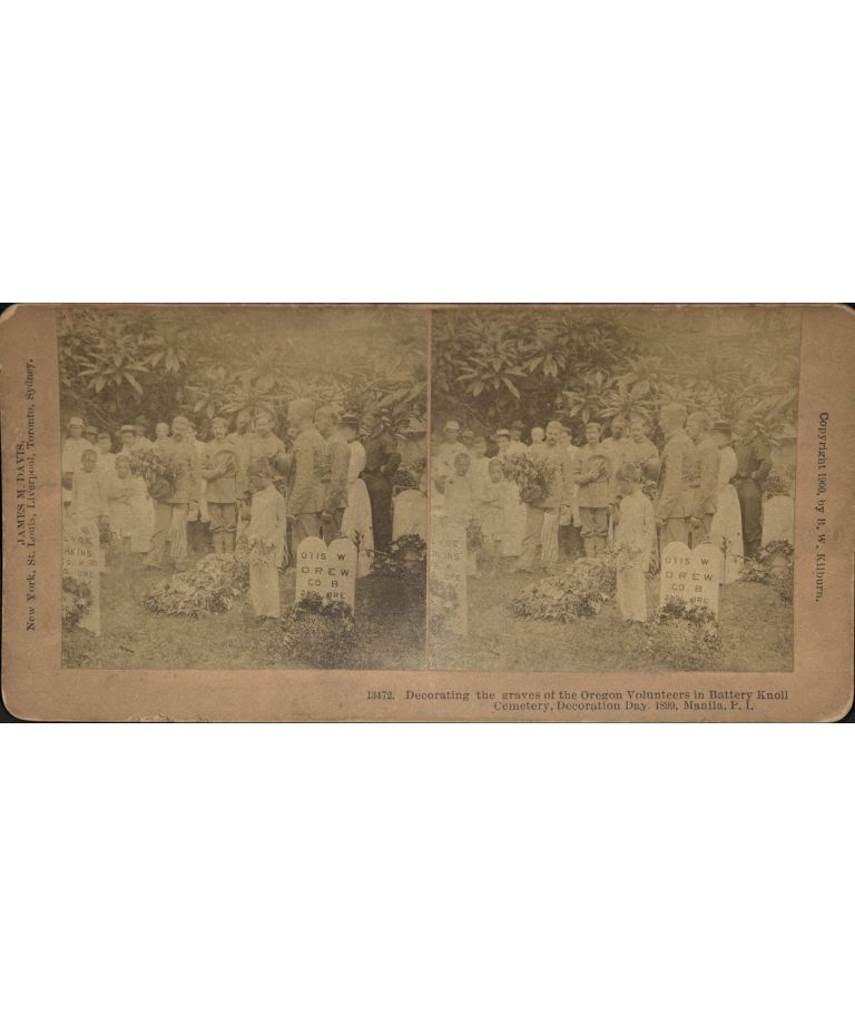 Decorating the graves of the Oregon Volunteers in Battery Knoll Cemetery, Decoration Day, 1899, Manila, P. I.