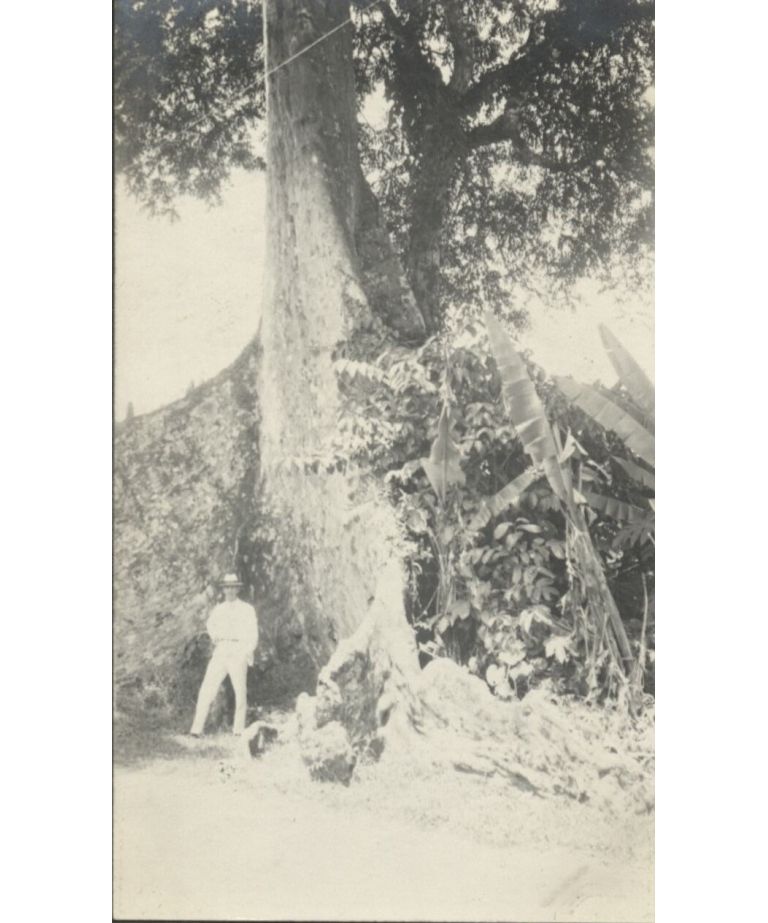 Dad [Harry Hawkins, Sr. in front of a big mahogany tree],