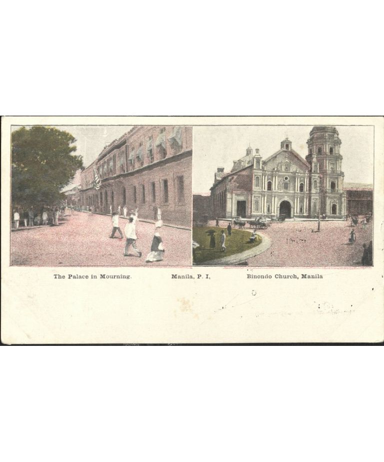 The Palace in Mourning and Binondo Church, Manila, P. I. [dual view].