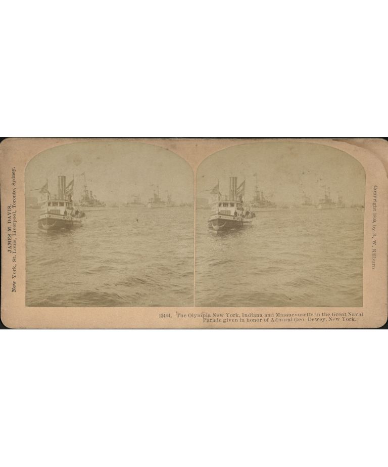 The Olympia, New York, Indiana and Massachusetts in the Great Naval Parade given in honor of Admiral Geo. Dewey, New York.