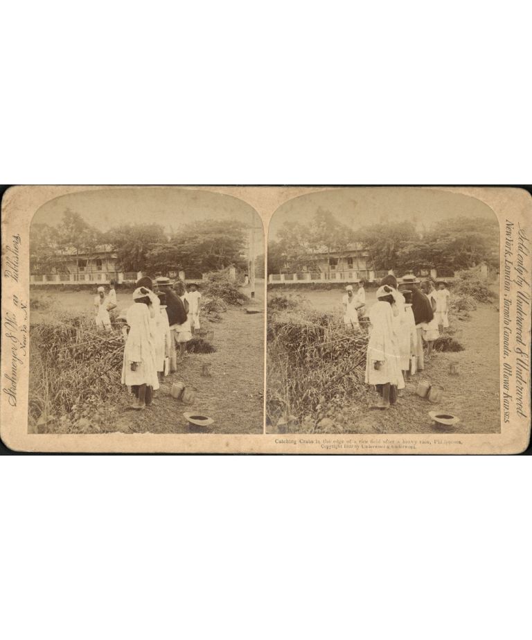 Catching Crabs in the edge of a rice field after a heavy rain, Philippines.