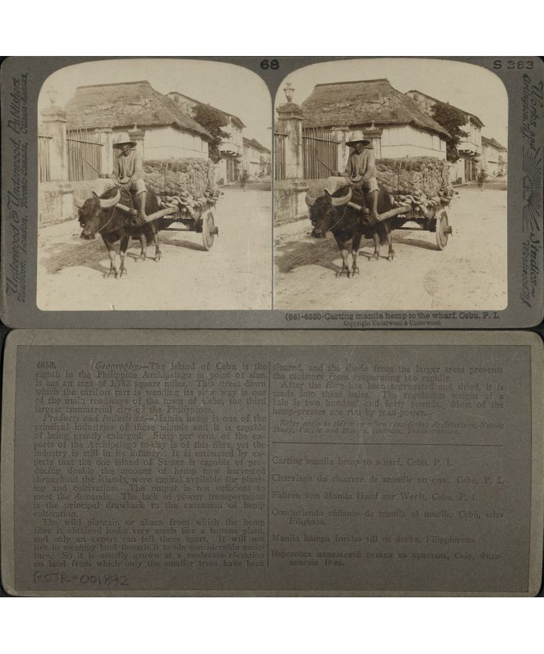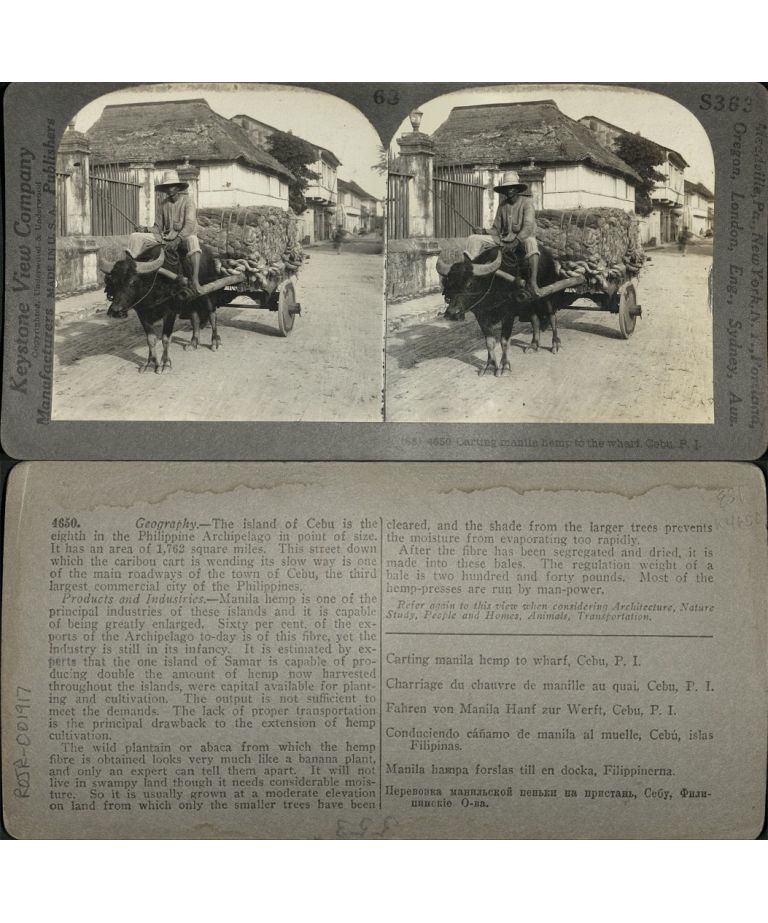 Carting Manila hemp to the wharf, Cebu, P. I.