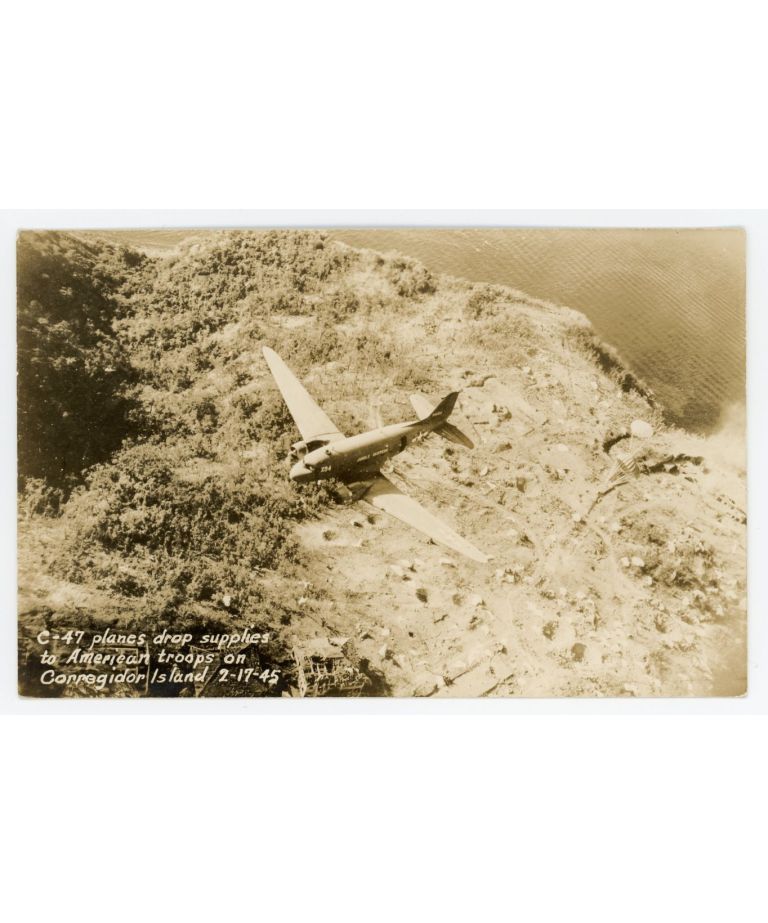 C-47 planes drop supplies to American troops on Corregidor Island 2-17-45.