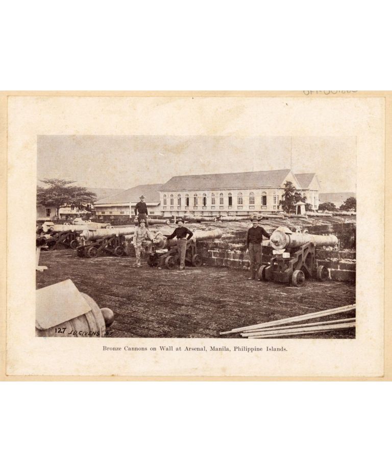 Bronze cannons on wall at arsenal, Manila, Philippine Islands.