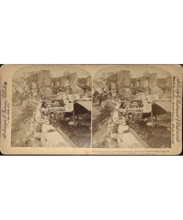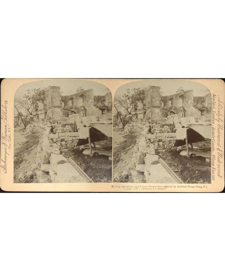 Building destroyed to erect Filipino Breastworks - captured by American Troops, Pasig, P. I.