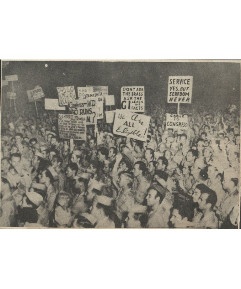 The Manila demonstration. Soldiers jam the grounds in front of and about the Manila City Hall.