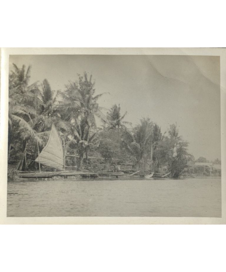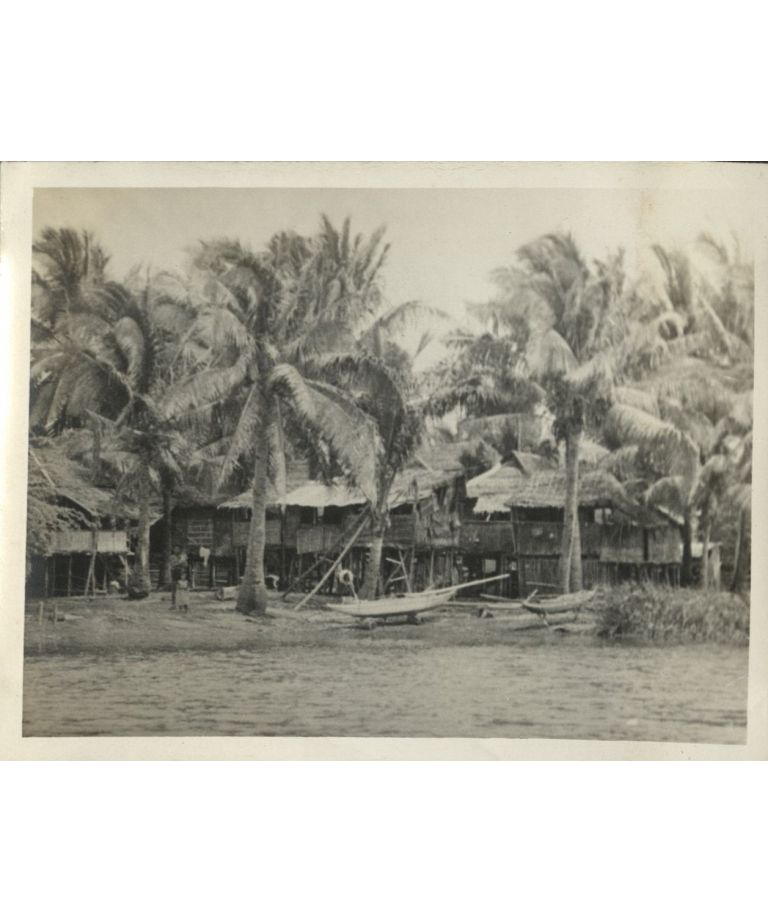 Boat trip up Taal [Pansipit] River [Boats and village on shore].