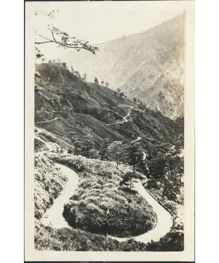 Benguet Road - "Zig Zag Trail." Note tropical trees and pine trees as well. A beautiful mountain torrent courses down to the sea. ...