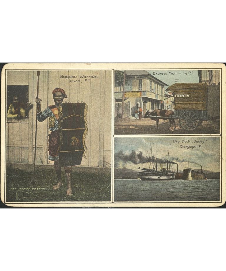 Bagobo warrior, Davao, P. I. / Express mail in the P. I. / Dry dock �Dewey,� Olongapo, P. I.