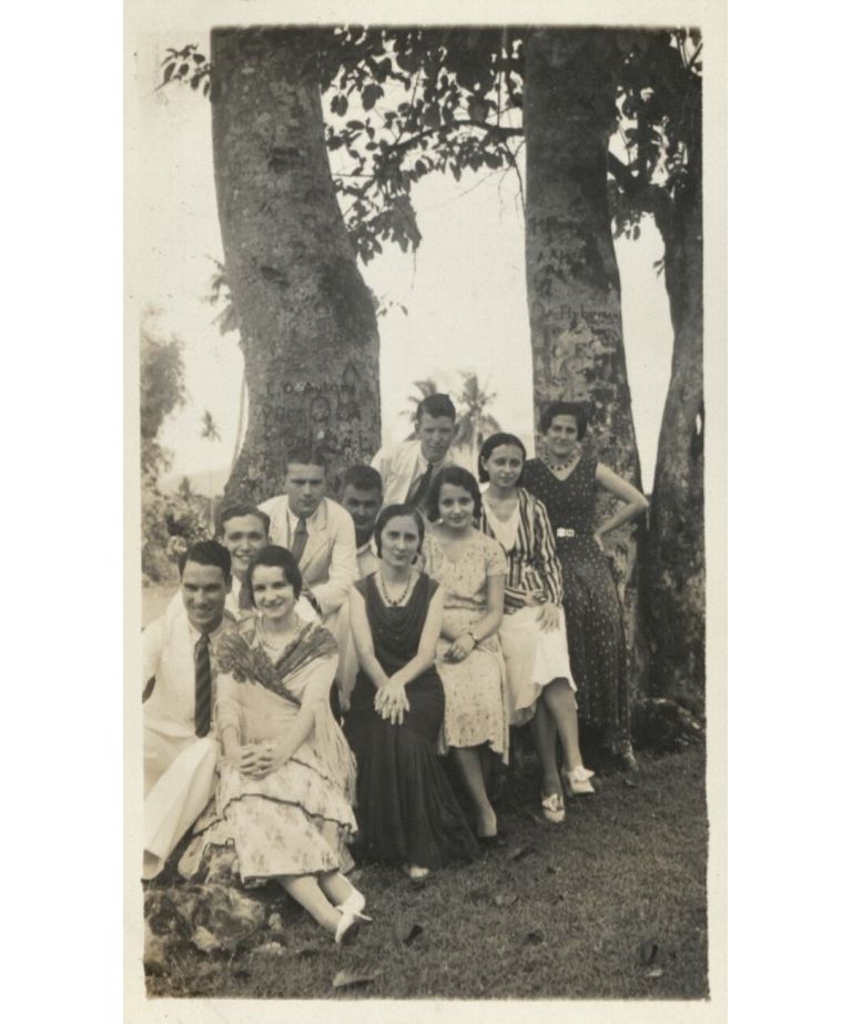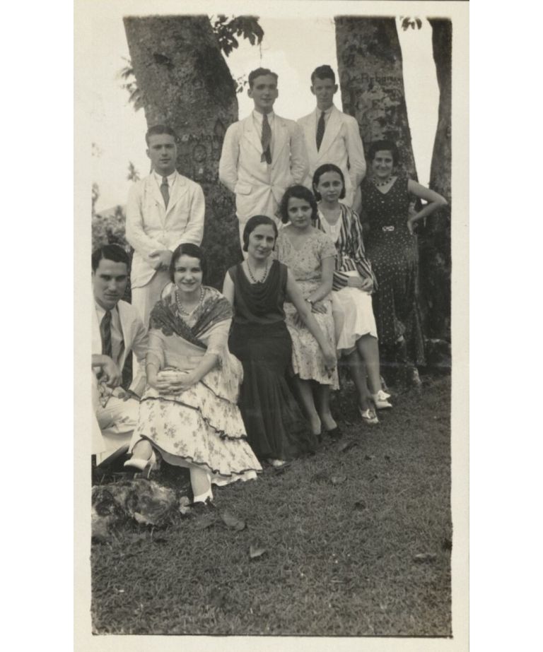 Back row: Augustine [Agustin?] Vallejo. C. [Carlos] Cerquella, A. [Alfred] Cerquella, Mr, Cooper, and myself [Harry Hawkins, Jr.]. Front row: L. [Luisita] Gimenez, M. [Mary] Vallejo, Carmen Herrero, Paquita Herrero, and C. [Carmen] Vallejo.