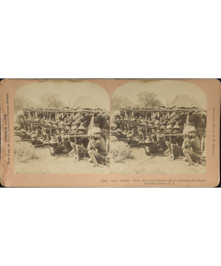 Aim! Ready! Fire! The 4th Infantry Boys repulsing an attack at Imus, Luzon, P. I.