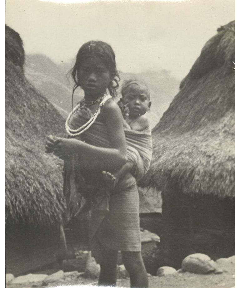 A young Igorot girl carrying her sister.