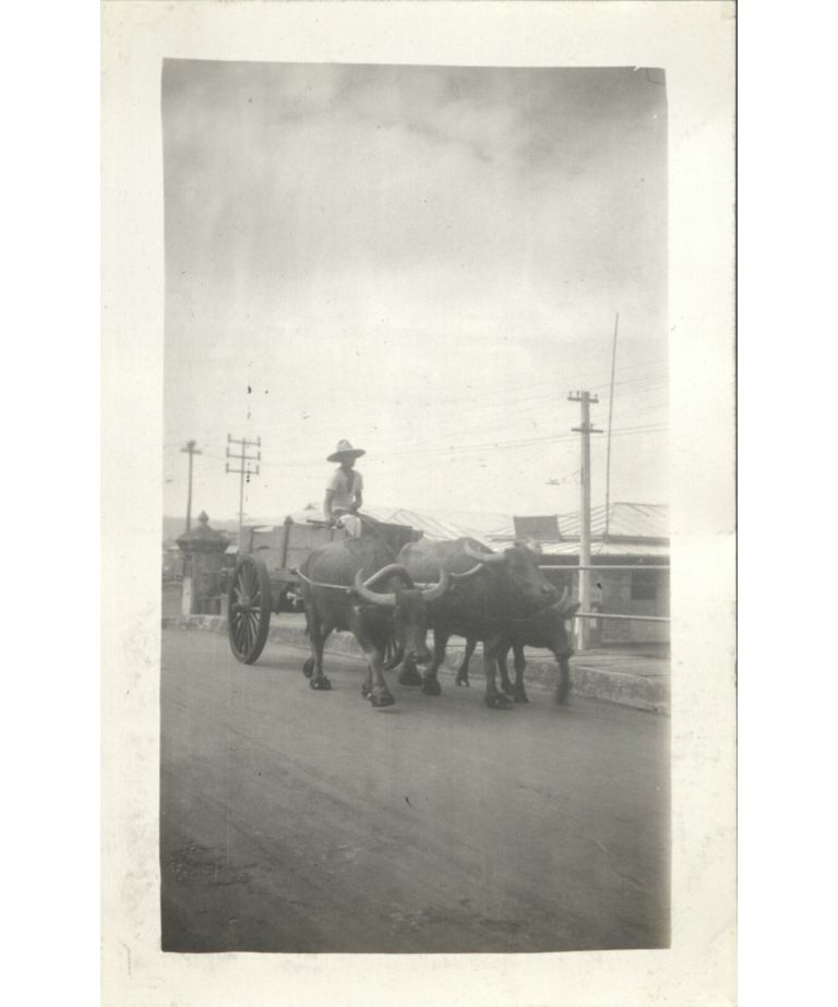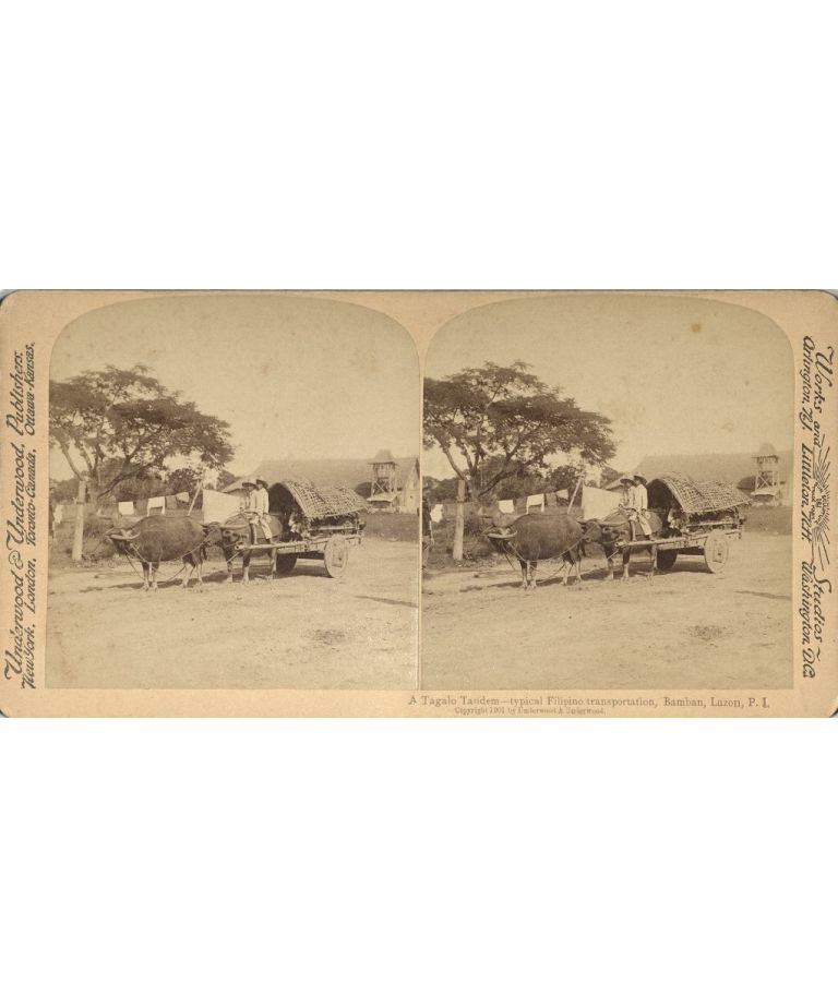 A Tagalo Tandem - typical Filipino transportation, Bamban, Luzon, P. I.
