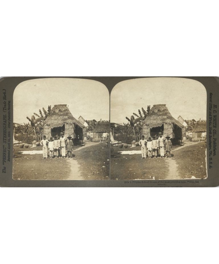 A Filipino School House of the most primitive type, Philippine Islands.