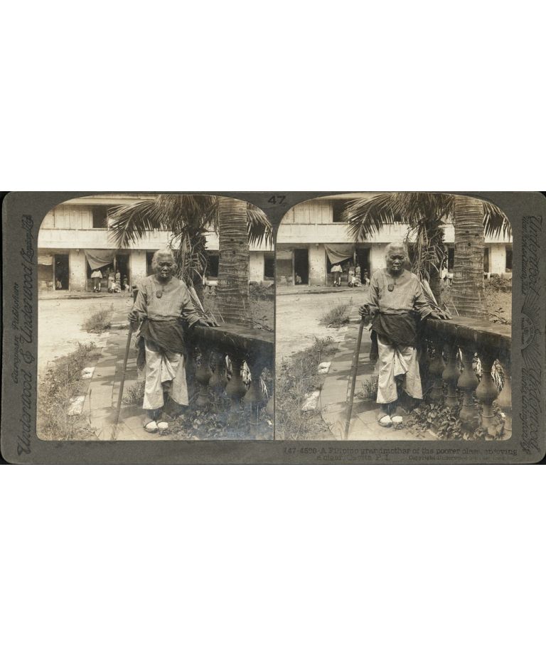 A Filipino grandmother of the poorer class, enjoying a cigar, Cavite, P. I.