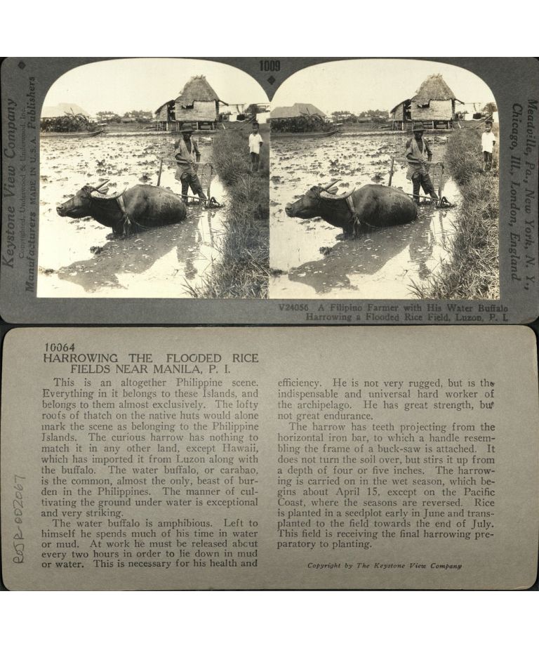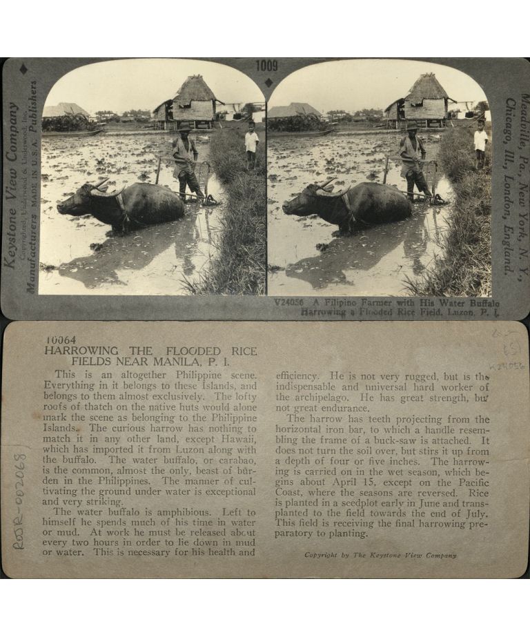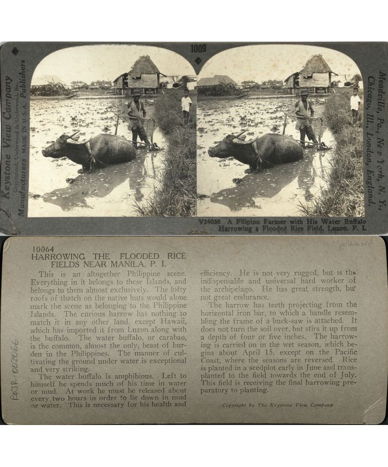 A Filipino Farmer with His Water Buffalo Harrowing a Flooded Rice Field, Luzon, P. I.