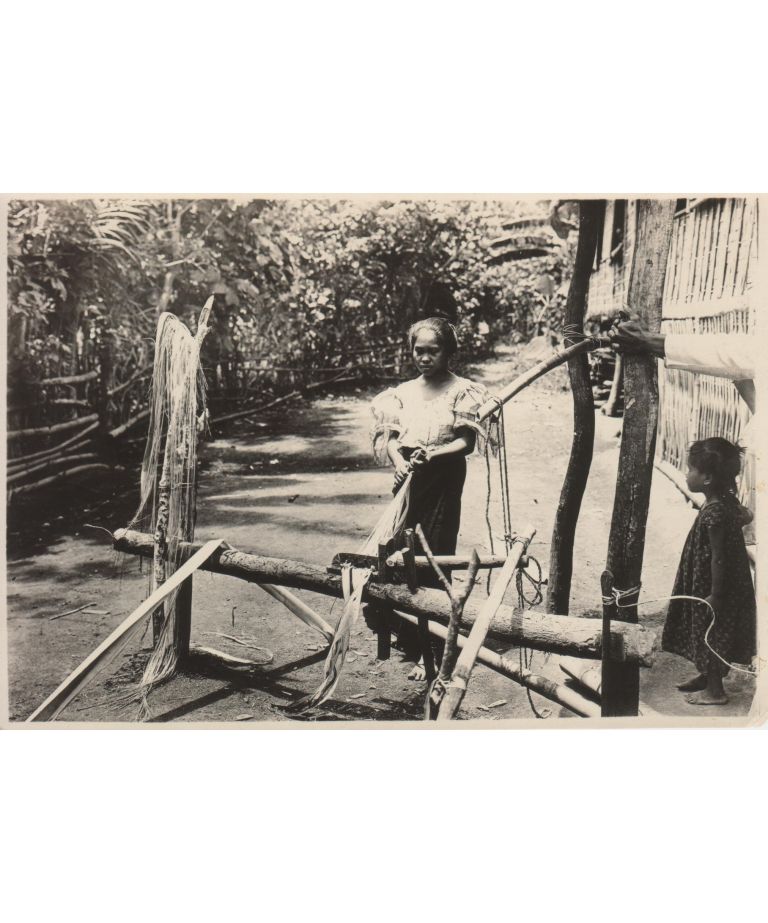 A Bicol girl stripping hemp, Albay Province, P. I.