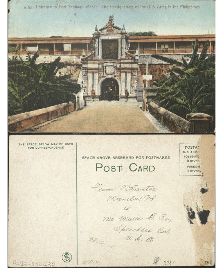 A 53 � Entrance to Fort Santiago, Manila. The Headquarters of the U. S. Army in the Philippines.