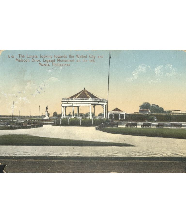 A 44 � The Luneta, looking towards the walled city and Malecon Drive, Legaspi Monument on the left.