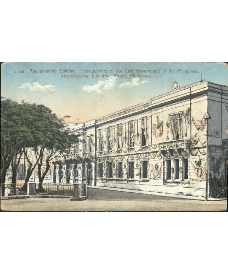 A 239 � Ayuntamiento Building. Headquarters of the Civil Government in the Philippines, decorated for July 4th.