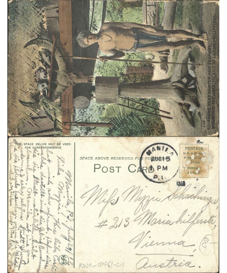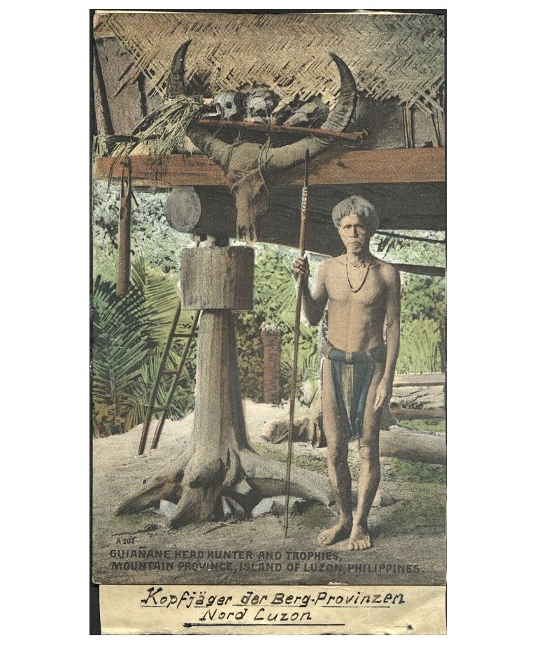 A 202 � Guianane Head Hunter and Trophies, Mountain Province, Island of Luzon, Philippines.