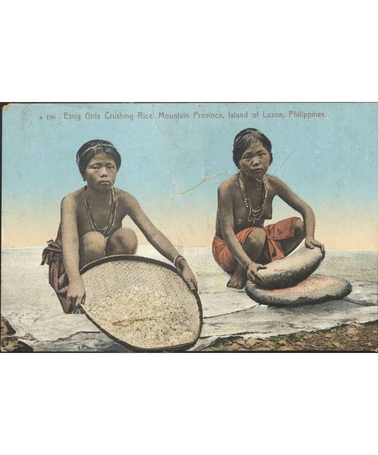 A 198 � Etnig [Itneg, or Tinguian] Girls Crushing Rice, Mountain Province, Island of Luzon, Philippines.