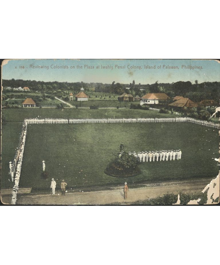 A 184 � Reviewing Colonists on the Plaza at Iwahig Penal Colony, Island of Palawan, Philippines.