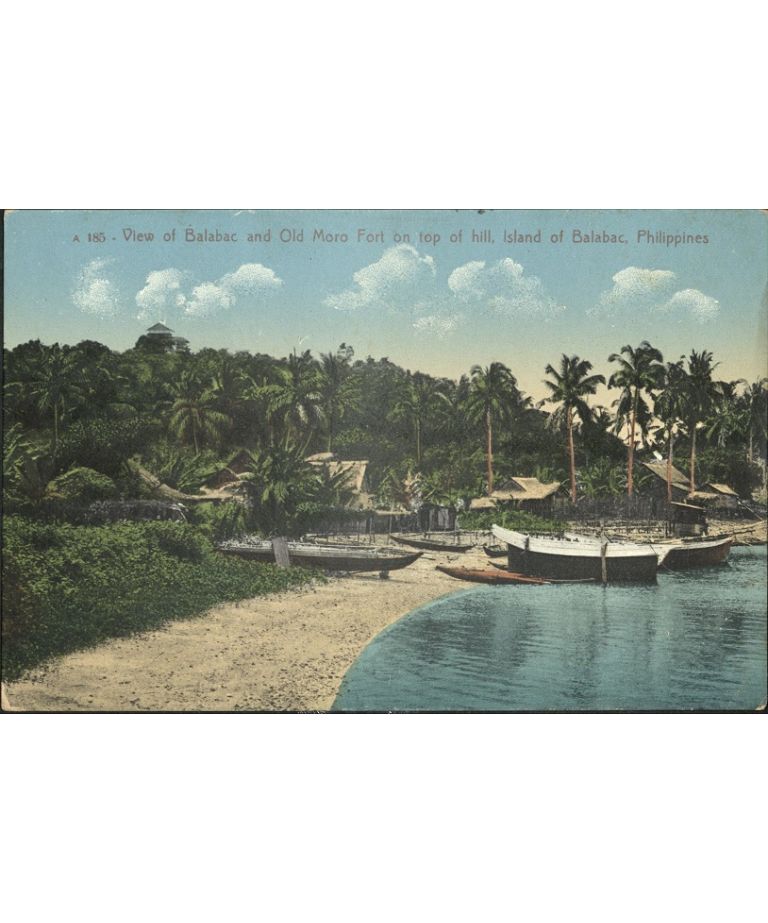 A 185 � View of Balabac and Old Moro Fort on top of hill, Island of Balabac, Philippines.