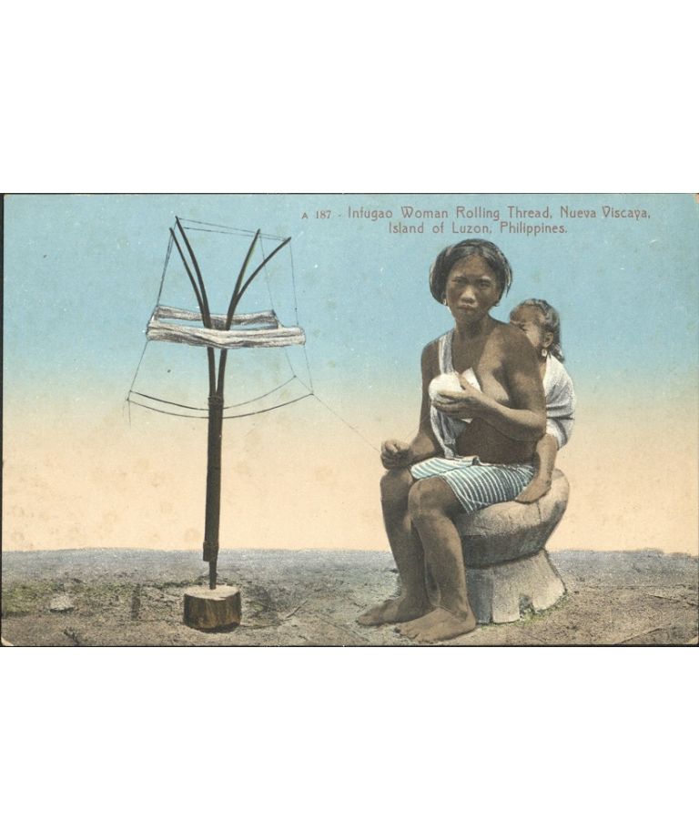 A 187 � Infugao [Ifugao] Woman Rolling Thread, Nueva Viscaya, Island of Luzon, Philippines.