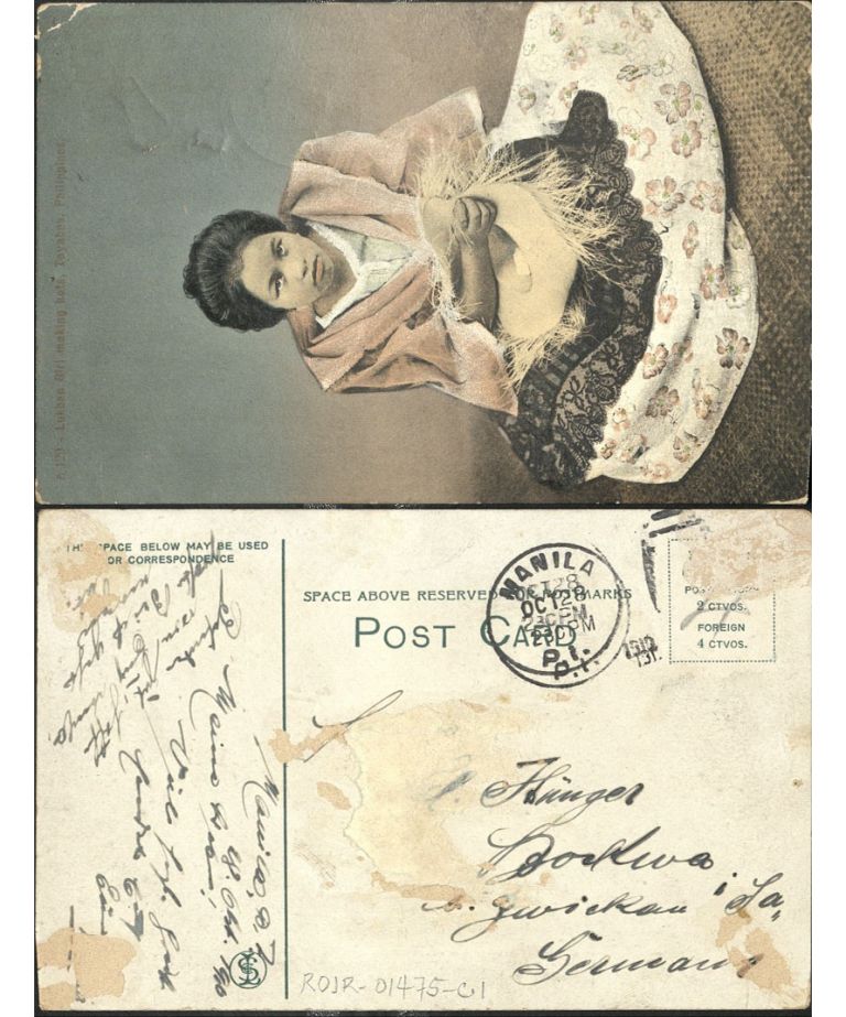 A 129 � Lukban [Lucban] girl making hats, Tayabas, Philippines.