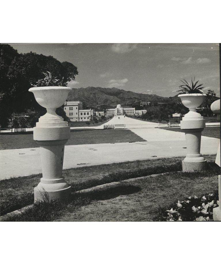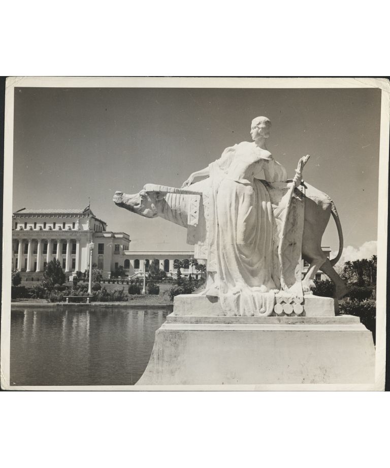 87. PHILIPPINES: "Fuente Osmena" (Osmena Fountain) in Cebu, overlooking the Cebu Capitol at the end of the avenue. Public library to the left.