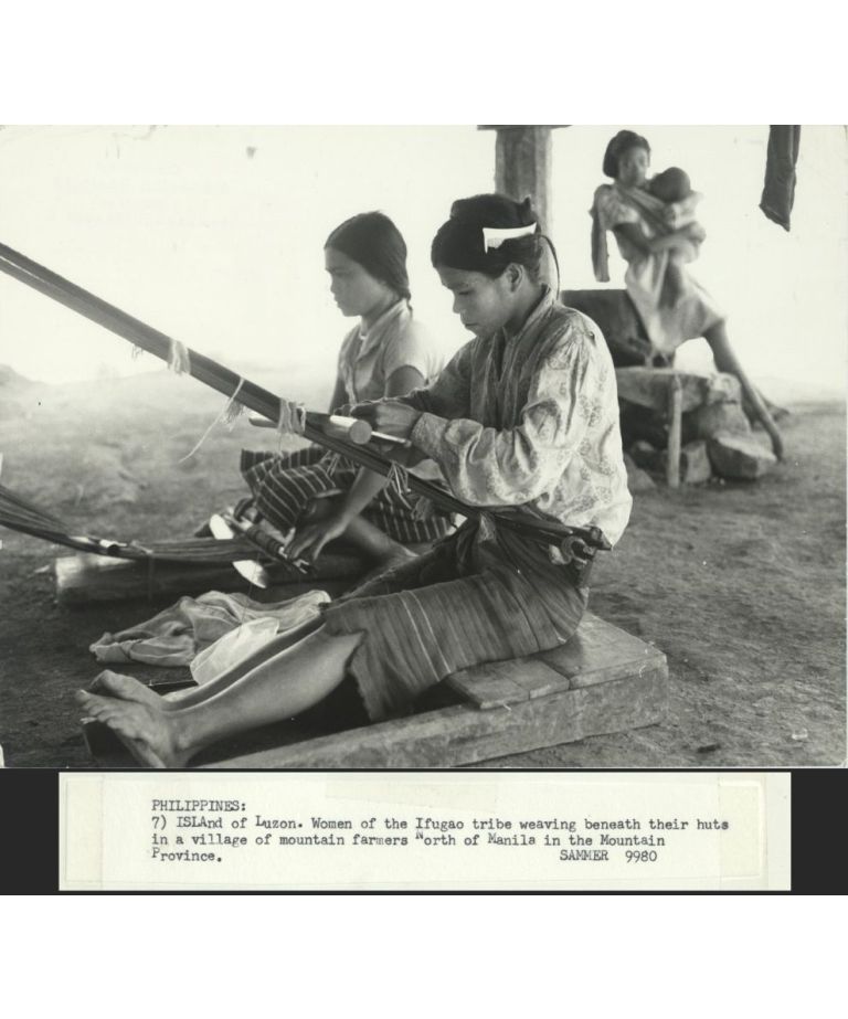 7. PHILIPPINES: Island of Luzon. Women of the Ifugao tribe weaving beneath their huts in a village of mountain farmers north of Manila in the Mountain Province. Sammer 9980.