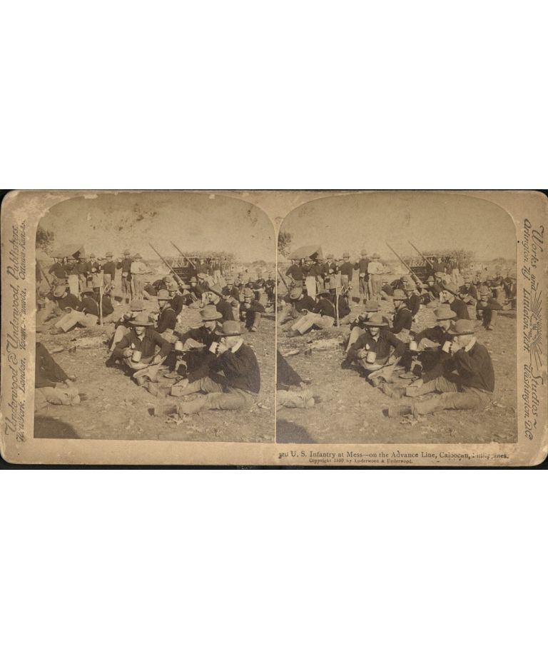 3rd U.S. Infantry at Mess - on the Advance Line, Caloocan, Philippines.