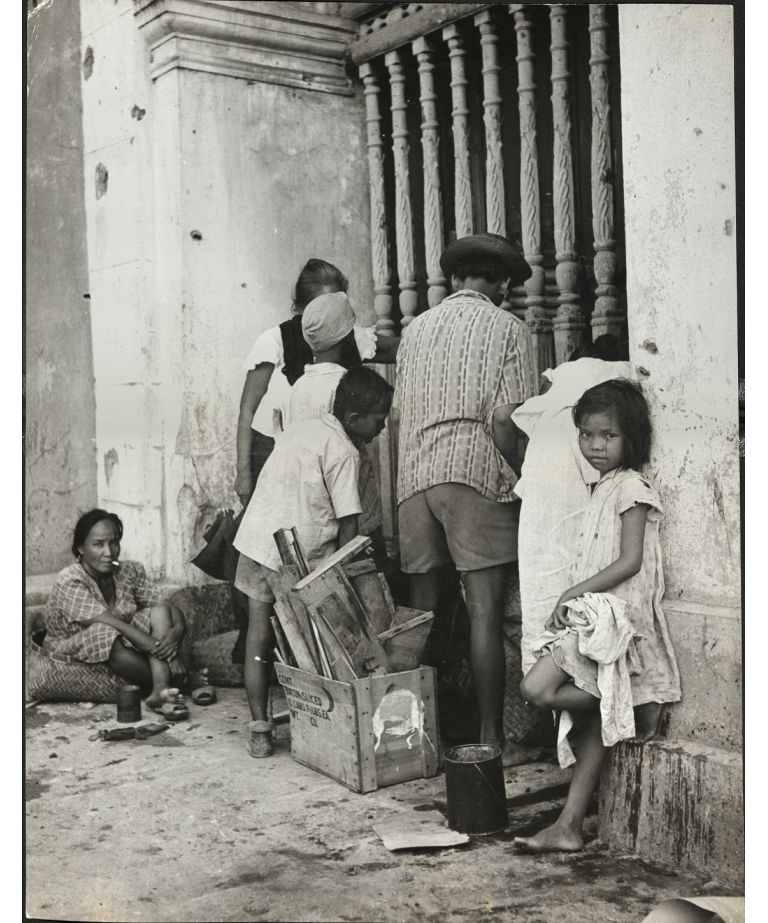39. PHILIPPINES - Children. Undernourished Manila children on the street near their home. J-1436.