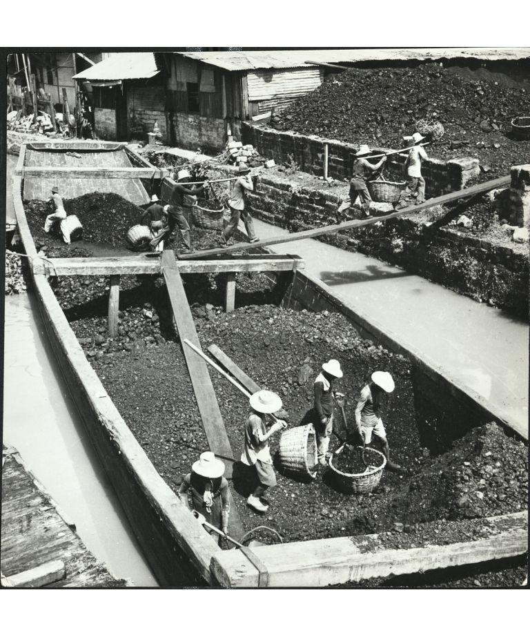 35. PHILIPPINES, Cebu: A load of chromite [coal?] is carried down the river. E 1214.